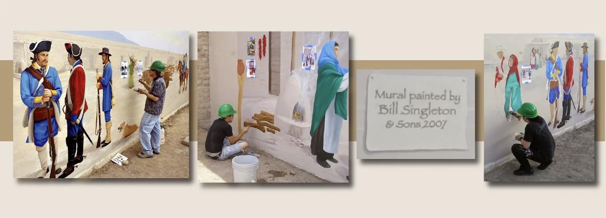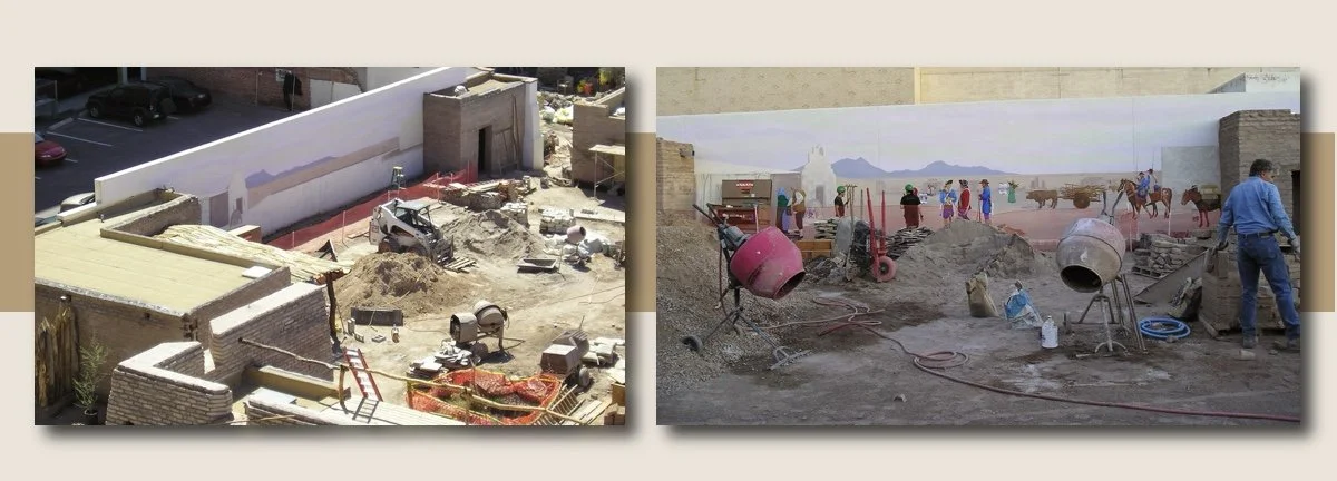 In 2007, I completed a large-scale historical mural for the Presidio San Agustín del Tucson, coinciding with the opening of the reconstructed fort site in downtown Tucson. The mural depicts life at the Tucson Presidio in the late 1700s and was developed through careful research to reflect the architecture, clothing, and cultural diversity of the period.